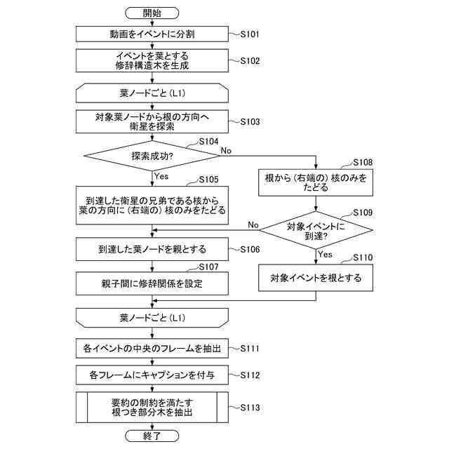 前記修辞構造木生成部は、前記画像をフレームとする動画が含む事象ごとのフレーム列が葉ノードに対応する前記修辞構造木を生成するように構成されており、