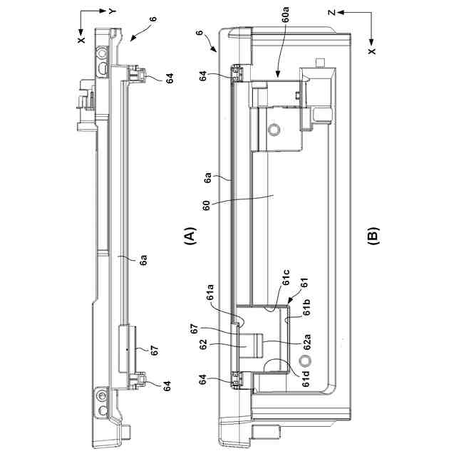 (A)及び(B)は別の実施形態に係る操作パネル及び支持フレームの断面図。