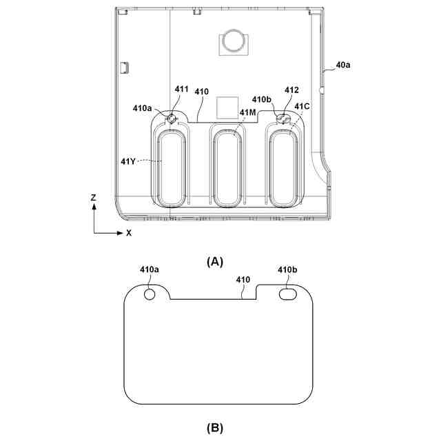 (A)は原稿読取部の正面カバーの正面図、(B)は正面カバーの底面図。