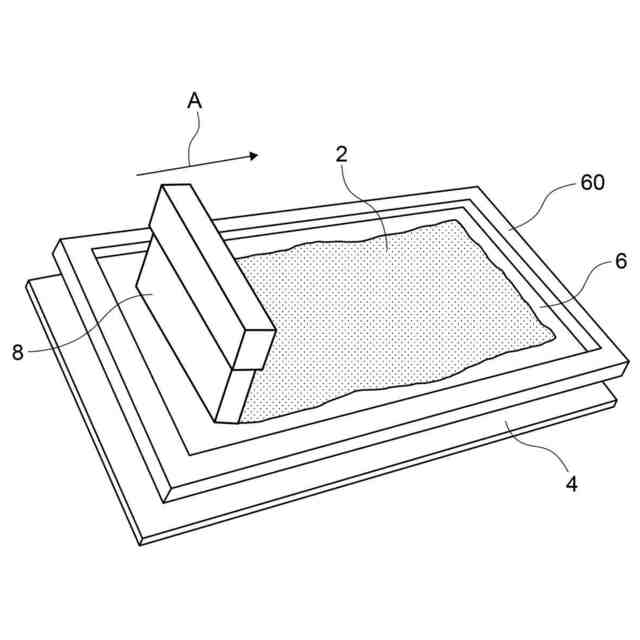 スクリーン印刷法による電極箔上への負極合材塗布液の塗布方法の一例を示す概略斜視図である。