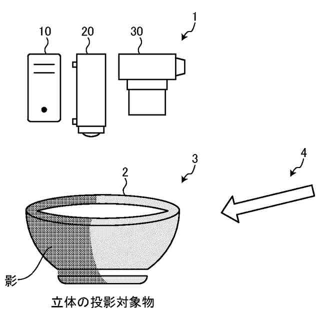 本発明は、上記に鑑みてなされたものであって、立体である投影面に影の領域と影ではない領域が存在する場合でも、各領域に適切な補正を行うことを目的とする。