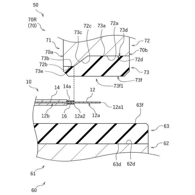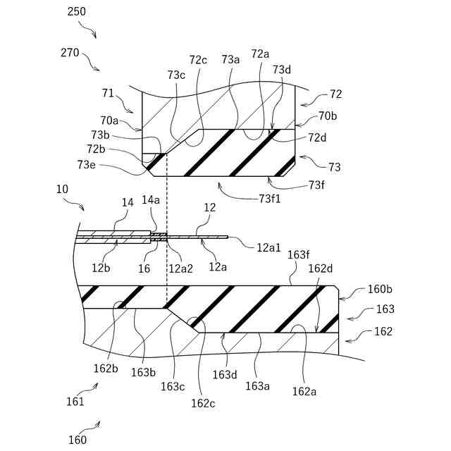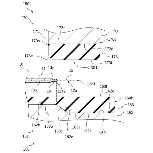 図2は、電極シート10の模式図である。図2に示されているように、電極シート10は、集電体12と、電極活物質層14と、保護層16とを備えている。集電体12は、金属箔からなる部材である。集電体12は、長尺な帯状の金属部材である。集電体12としては、所要の導電性を有した金属材料が用いられうる。正極集電体としては、例えば、アルミニウム、アルミニウム合金等が用いられうる。負極集電体としては、例えば、銅、銅合金等が用いられうる。電極活物質層14は、集電体12のうち予め定められた位置に塗工されている。帯状の集電体12の少なくとも一方の面には、電極活物質層14が形成されている。本実施形態では、集電体12の両面に電極活物質層14が形成されている。電極活物質層14は、電極活物質を含む層である。正極活物質としては、例えば、リチウム遷移金属複合酸化物が用いられうる。負極活物質としては、例えば、炭素材料、シリコン系材料およびそれらの混合酸化物等が用いられうる。電極活物質層は、バインダ、導電材等の電極活物質以外の添加剤を含んでいてもよい。