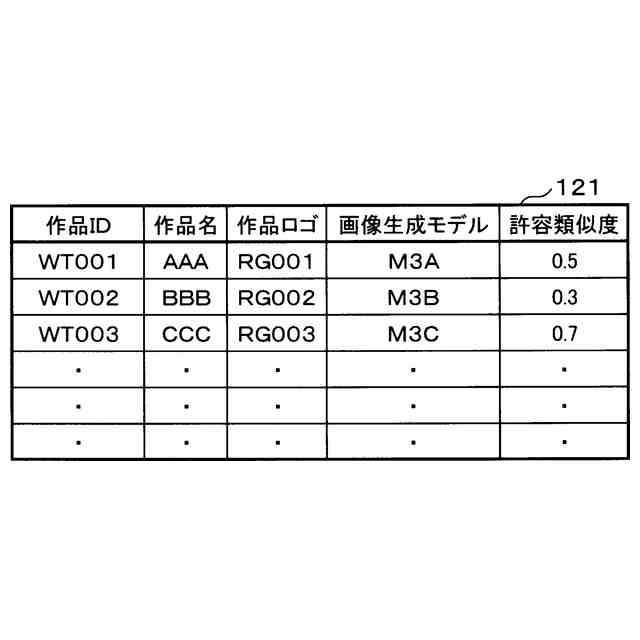 実施形態2に係る作品テーブルの一例を示す説明図である。