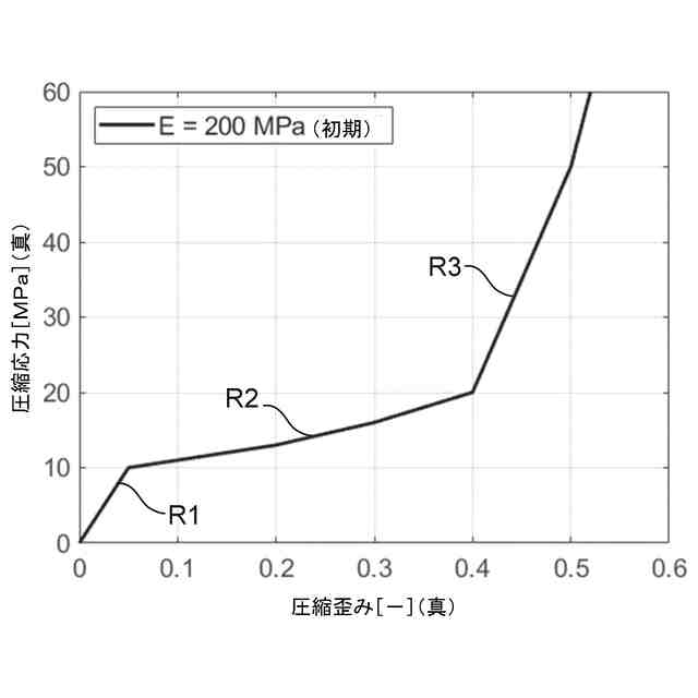 前記応力プラトーは、前記応力しきい値から、0.3から0.5の圧縮歪みの範囲内の点まで延びる、請求項7に記載のダイナミック海底電力ケーブル(1)。