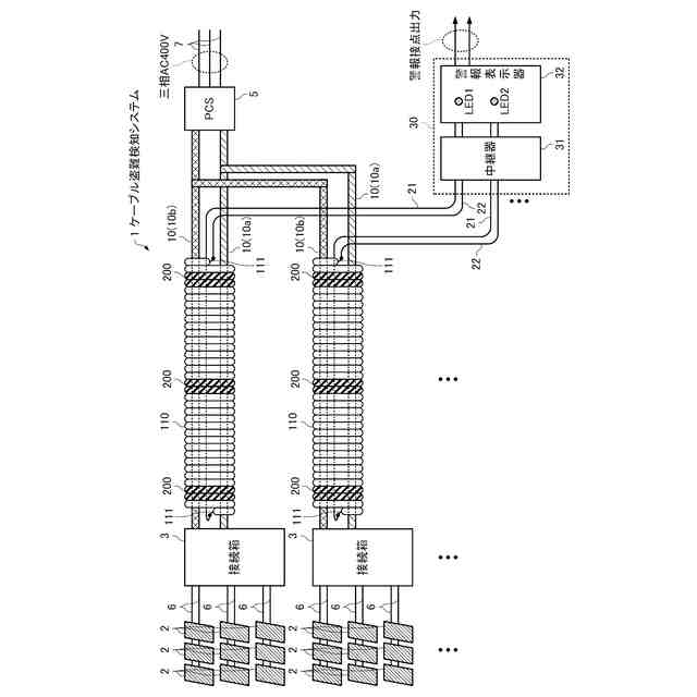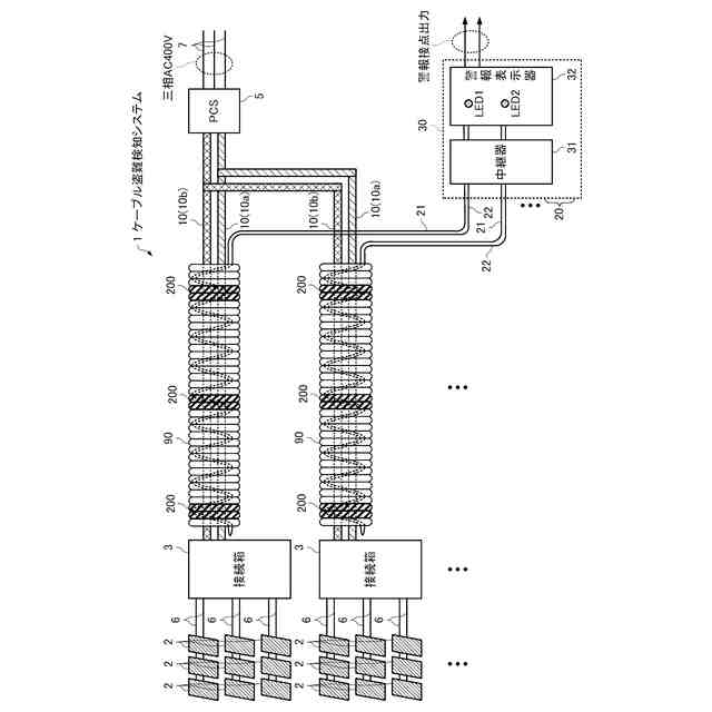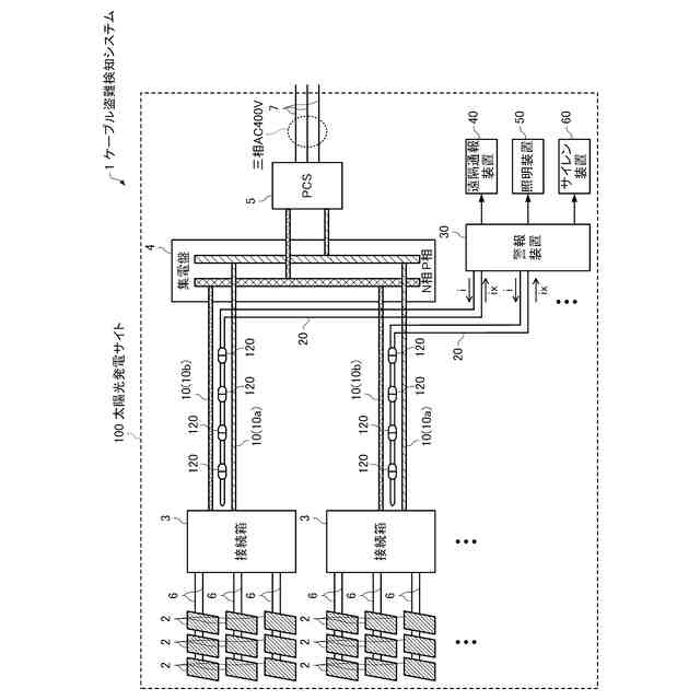 銅の価格の高騰や入手困難な状況下において、送電ケーブルが切断されて持ち去られる窃盗事件が多発している。特に、太陽光発電サイトは、夜間は発電しておらず盗難行為の際に感電するリスクが低く、近隣に住民が少ない広大な空き地を利用しているケースも多いため、太陽光パネルで発生した直流電力を集めて集電盤やPCSに伝送する太い幹線ケーブルの窃盗事件が多発している。この問題に対して、特許文献1には、ケーブルを介して太陽光パネルが接続される直流入力端子と接地端子との間の静電容量を計測し、計測した静電容量値に基づいてケーブルの断線を検出し、ユーザーに異常を通知するパワーコンディショナーが開示されている。