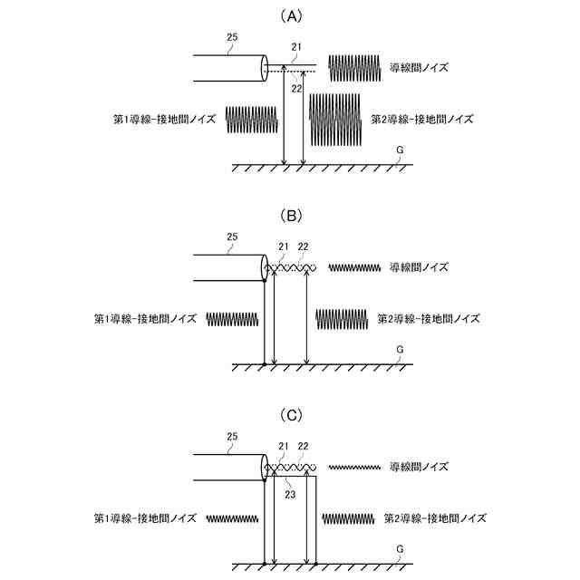 本適用例に係るケーブル盗難検知システムによれば、シールド材が接地されることにより、第1心線-接地間ノイズや第2心線-接地間ノイズが小さくなる。さらに、第1心線及び第2心線がより対線を構成することにより、第1心線-接地間ノイズと第2心線-接地間ノイズとの差も小さくなるので、第1心線-第2心線間ノイズが小さくなる。このように、本適用例に係るケーブル盗難検知システムによれば、ノイズ抑制効果が期待できるので、ノイズに起因して警報装置が誤動作するおそれが低減される。