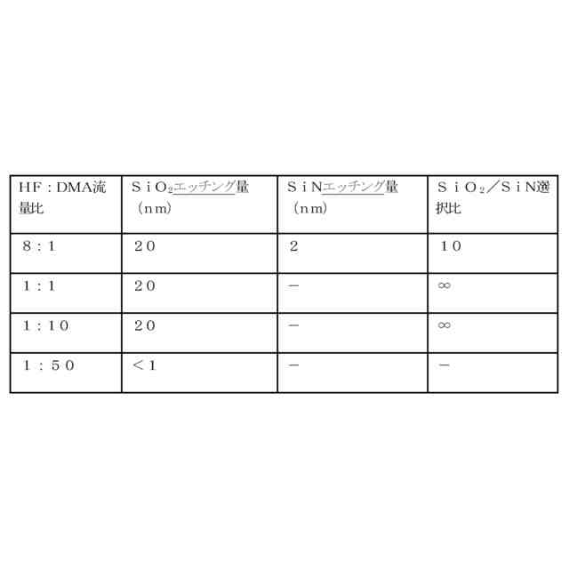 しかし、シリコン酸化膜をエッチングするために既存の湿式エッチングを利用する場合、エッチング選択比は高いが、エッチング量の制御が難しい。また、湿式エッチングは等方的にエッチングが進行し、微細層の実現が容易ではない。シリコン酸化膜をエッチングするための他の方法として、プラズマエッチング法が使用できる。プラズマエッチング法は微細層の実現は可能であるが、エッチング選択比が低いので、望ましい薄膜の選択的除去が難しい。これに加えてプラズマエッチング法の場合、プラズマによる下層膜の損傷が発生する問題点もある。