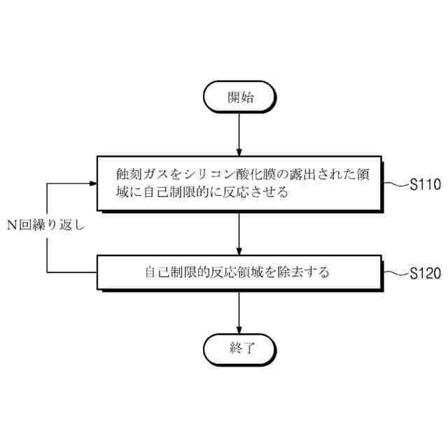 【解決手段】本発明はシリコン酸化膜のドライエッチング方法に関することであって、前記ドライエッチング方法は、シリコン酸化膜を含む第1層と、前記シリコン酸化膜と他の材料を含み、前記第1層上に積層された第2層を含む積層構造にエッチングガスを反応させて前記第1層を選択的にエッチングする段階を含み、前記第1層はシリコン酸化膜を含み、前記エッチングする段階は、前記第1層の露出された領域に前記エッチングガスを自己制限的(self-limiting)に反応させる段階と前記自己制限的に反応された領域を除去する段階を含む。