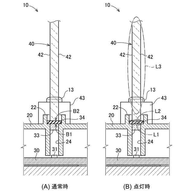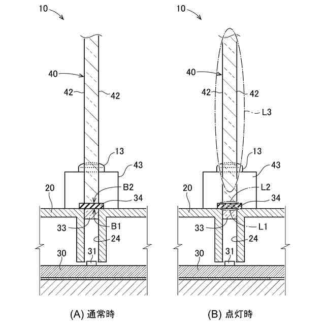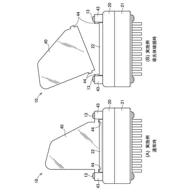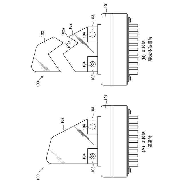 また、交換構造を設けた場合、光源とコンバイナー間に水やゴミが浸入した際に水分による屈折やゴミによって光路の影になり、発光の見栄えに影響を与え、運転者に正しく通知できない虞がある。