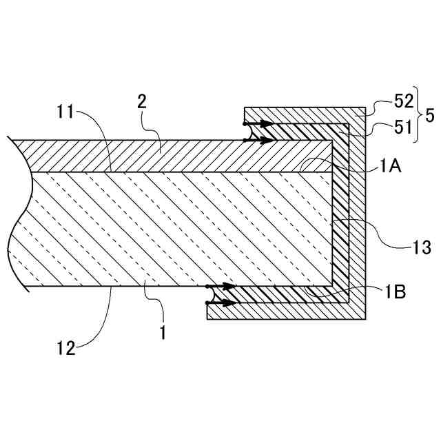 前記導電部材は、前記基板の前記第一面とは反対側の第二面における第二辺縁と、前記基板の前記第一辺縁及び前記第二辺縁に沿った外端面と、を連続して覆っている請求項1に記載の太陽電池モジュール。