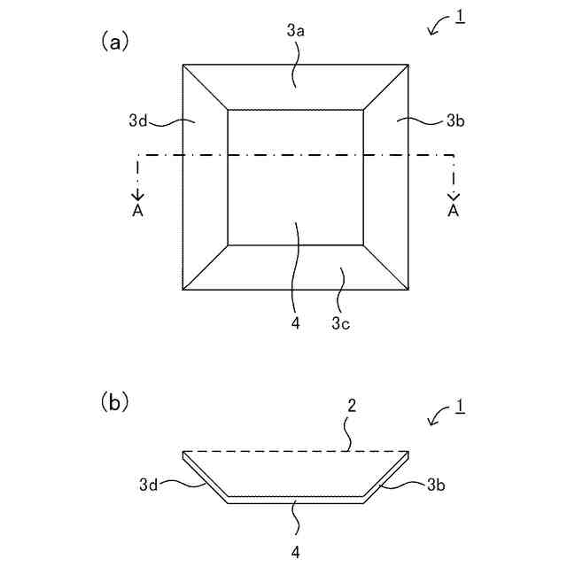 四角錐台の形状を有しており、前記四角錐台の上底面および下底面が長方形形状であり、