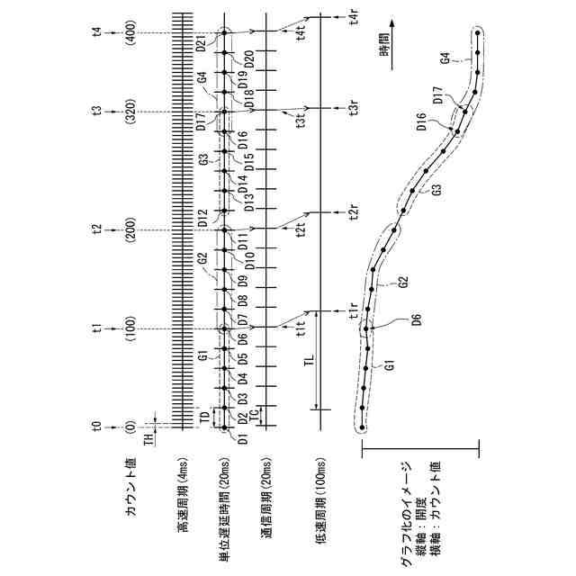前記出力部は、出力する前記出力信号の送出時刻に対応したカウント値をさらに出力する