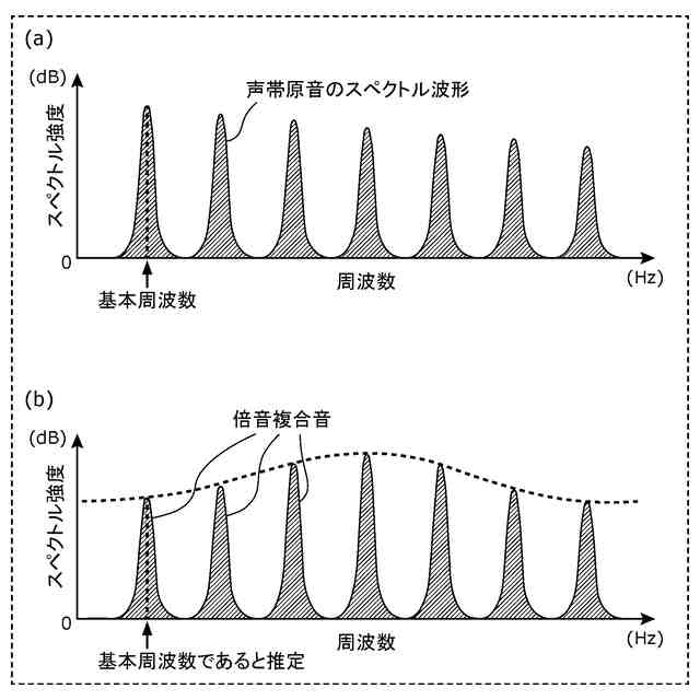 音声を分析することで音声の基本周波数を推定する方法が知られている。従来の基本周波数の推定方法は、大きく3つのグループに分けられる。1つ目は時間領域の特性を利用するものであり、2つ目は周波数領域の特性を利用するものであり、3つ目は時間領域および周波数領域の両方の特性を組み合わせたものである。