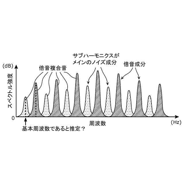 Subharmonics(サブハーモニクス)を含む音声のスペクトル波形を示す図である。