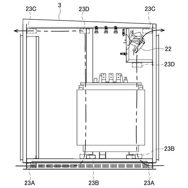 高圧受電設備キュービクルにおける粉塵センサの設置態様を示した説明図である。
