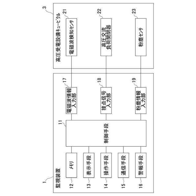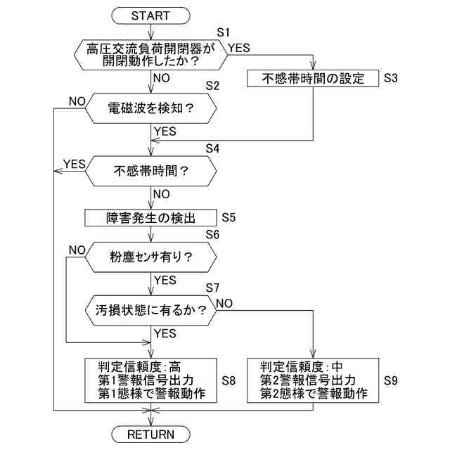 【解決手段】高圧受電設備キュービクル3内に設置されているLBS22の開閉動作が制御手段11により検知可能となっており、制御手段11は、LBS22が開閉動作したことを検知すると、電磁波検知センサ21により電磁波が検知されても障害の発生と判断しない不感帯時間を設定する。したがって、LBS22における開閉動作に起因して放射された電磁波の検知にもとづいて絶縁状態に係る障害発生と誤検出してしまうことがなく、従来よりも高い精度で高圧受電設備キュービクル3の絶縁状態を監視することができる。