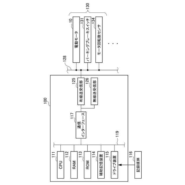 パーキングロック装置の制御装置のハードウェア構成の一例を示す図である。