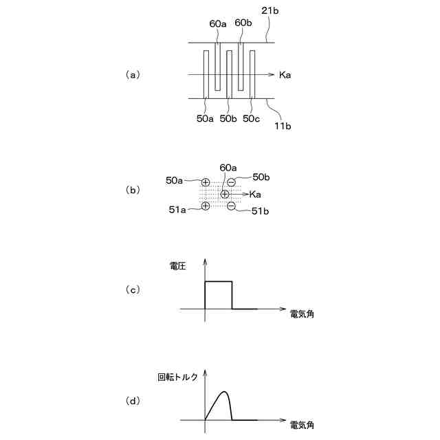 したがって、複数の一方側電極の極性が全て正極および負極のうちいずれか一方の極性に設定され、複数の他方側電極の極性が、全て、正極および負極のうち一方の極性から他方の極性に順次切り替えられる。このため、複数のステータ電極において、沿面放電が発生することを抑えることができる。複数のロータ電極において、沿面放電が発生することを抑えることができる。これにより、複数のステータ電極、複数のロータ電極のそれぞれに、電気絶縁部材が設けられていない。したがって、複数のステータ電極、複数のロータ電極のそれぞれにおいて、電気絶縁部材を排除することにより、軽量化を図るようにした静電モータを提供することができる。