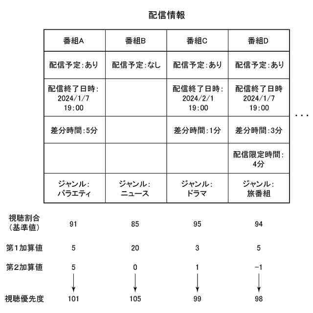 前記複数の放送番組の少なくとも一つに対応する第1配信コンテンツについての配信予定の有無に基づいた視聴優先度であって前記複数の放送番組のそれぞれの視聴優先度を設定する視聴優先度設定部と、