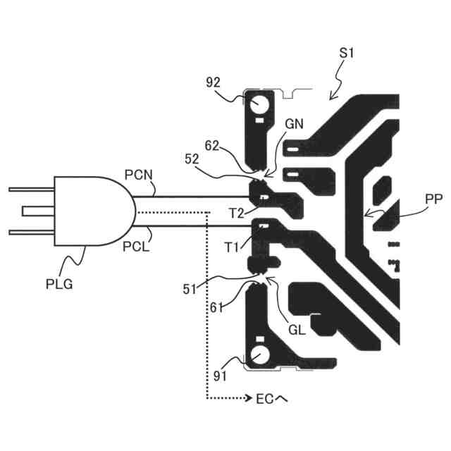 本構成は、金属エンクロージャーが、第1入力端子及び第2入力端子のうち少なくとも1つの入力端子側に向けて延びる突起部を有する。そのため、電源基板と、少なくとも1つの入力端子側に向けて延びる金属エンクロージャーの突起部との間に、新たな放電ギャップである第3放電ギャップが形成される。