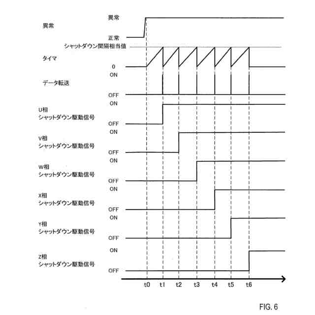 フェールセーフ時には、すべての電力変換回路を所定時間内にシャットダウンする必要がある。しかし、発明者の詳細な検討の結果、大きなサージ電圧の発生を回避するために、スイッチング素子のターンオフに起因するサージ電圧の発生タイミングをずらす制御をソフトウェアで実現する場合には、他処理の割り込み禁止、または、ハンドラを呼び出す処理の数によって処理時間が長くなってしまう可能性があるという課題が見出された。