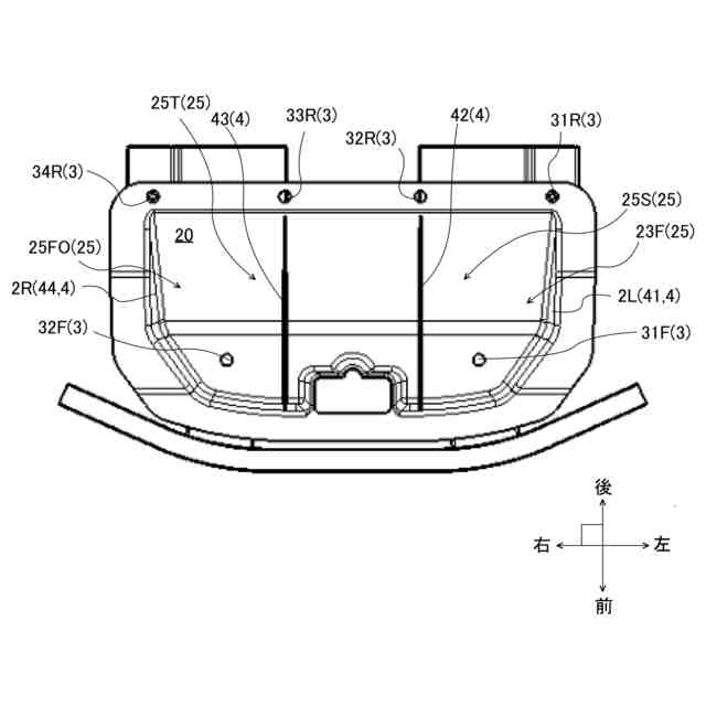 当該車両搭載品とは、具体的には、ラジエータ、ファン、空調装置、エアクリーナ、物品を収容保持するための収容構造体、ガソリン車やディーゼル車等においてはエンジン、電気自動車においてはモータやバッテリ等を意味する。