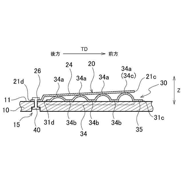 前記ベースプレートは、前記タブが載置される凹部を有してもよい。前記凹部は、前記挿通孔の中心を中心として環状に形成されてもよい。前記締結部材はリベットであってもよい。前記貫通孔は、前記締結部材の端部が収容されるザグリ穴として形成されてもよい。