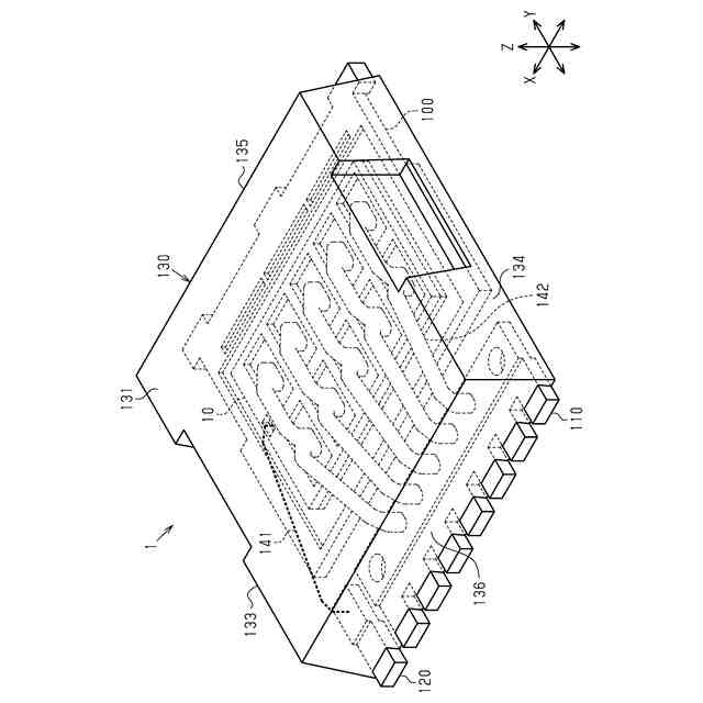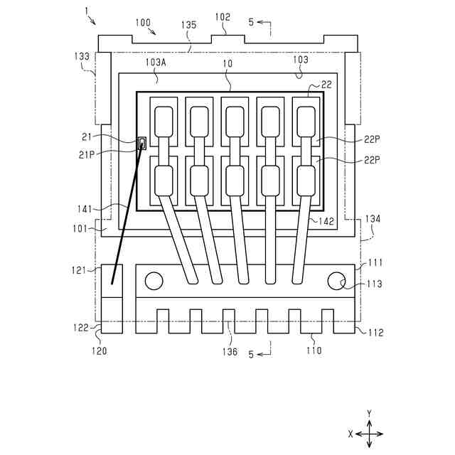 図1および図2を参照して、第1実施形態に係る半導体装置のパッケージ構造について説明する。図1は、第1実施形態に係る半導体装置のパッケージ構造の斜視構造を模式的に示している。図2は、図1の半導体装置の裏面側のパッケージ構造の斜視構造を模式的に示している。なお、図1では、パッケージ内部の構造を破線で模式的に示している。
