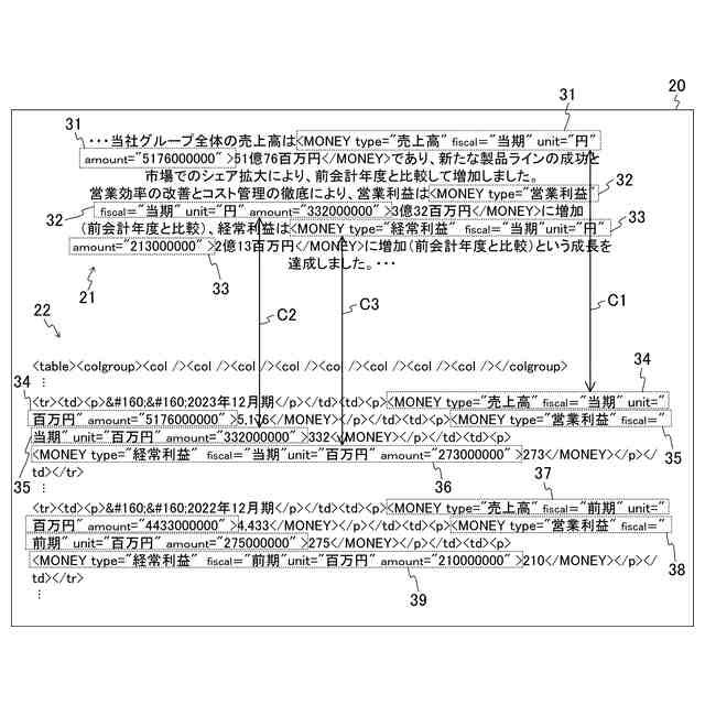 前記判定部は、前記金額表現の種類と、前記金額表現の年度情報と、前記金額表現の単位の種類とのうちの少なくとも1つを用いて、前記金額表現のうちから同一種類の複数の金額表現を特定し、当該複数の金額表現に係る前記金額表現の数値の総額を比較して当該複数の金額表現が同一か否かを判定する