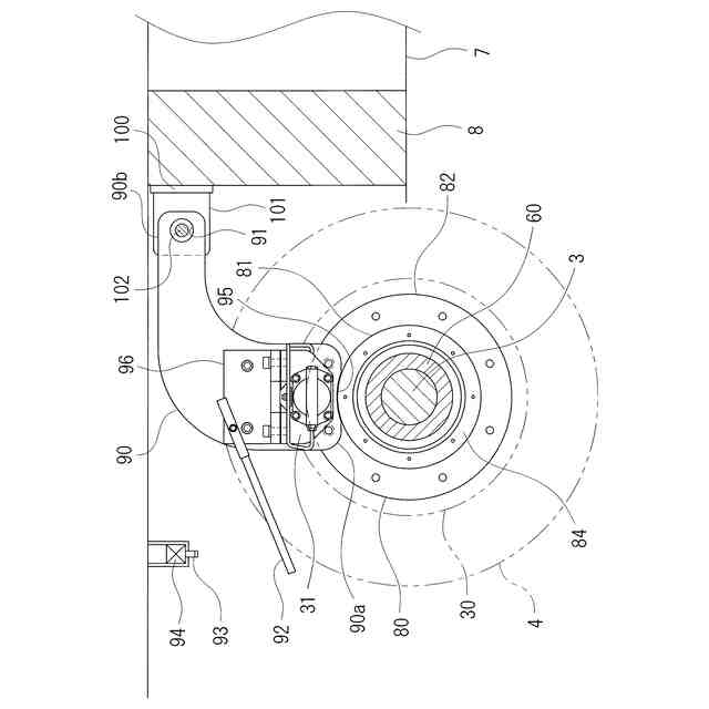 車軸は、地車本体から下方に取り外される構成であり、