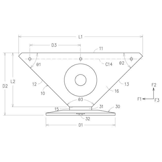 前記本体は、第1側辺、第2側辺及び第3側辺を有し、前記第1側辺は、第1方向に平行であり、相対する両端を有し、前記第2側辺及び前記第3側辺は、前記第1側辺の前記相対する両端にそれぞれ接続され、前記第1側辺と前記第2側辺との間に第1挟み角を有し、前記第1側辺と前記第3側辺との間に第2挟み角を有し、前記第2側辺と前記第3側辺との間に第3挟み角を有し、前記第1挟み角及び前記第2挟み角は、何れも45度であり、前記第3挟み角は、90度であり、前記本体の第1面には、少なくとも3つの取付孔が設けられ、前記少なくとも3つの取付孔の中心接続線が前記第1方向に平行であり且つ隣接する2つの取付孔の中心の間の距離が同じであり、