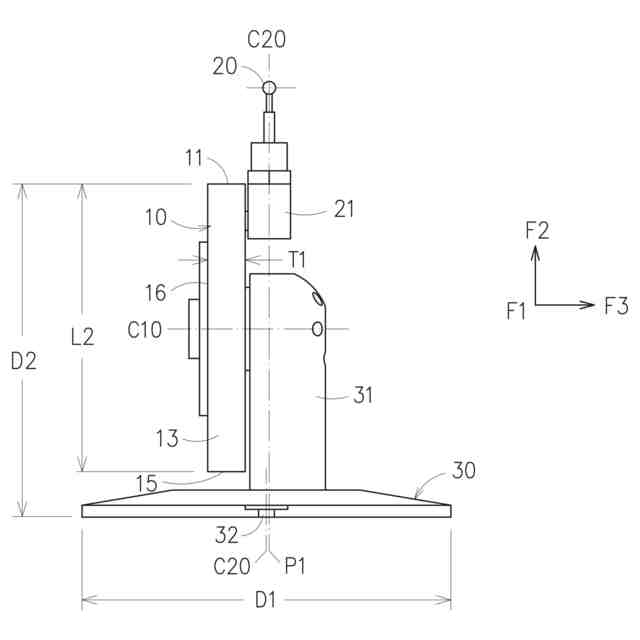 図1~図4に示す本発明の5軸空間精度測定治具100は、例えば、本体10及びベース30を含む。本体10の材質は、低膨張率の材料であり、例えば、花崗岩であってよい。