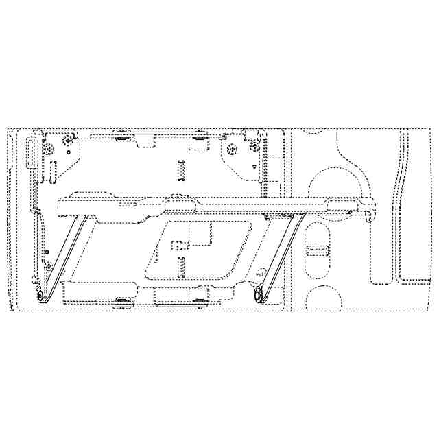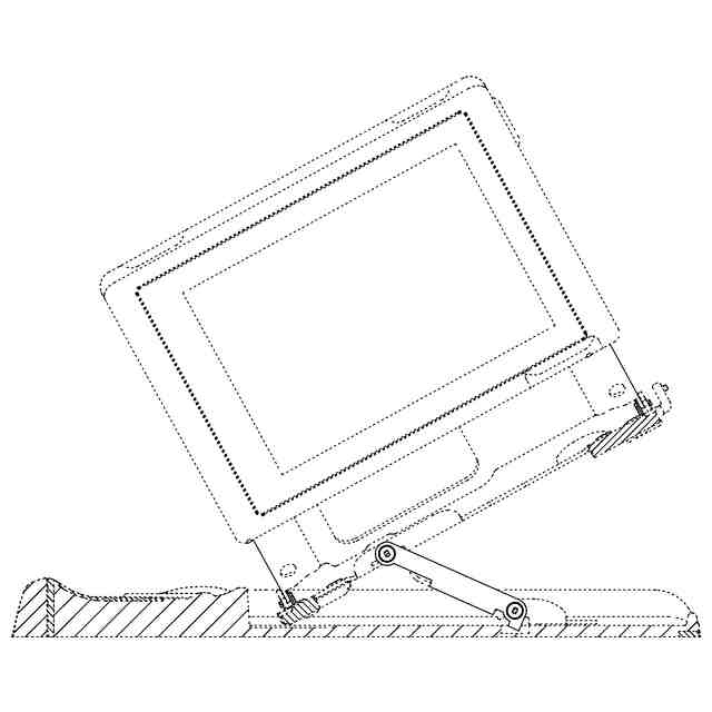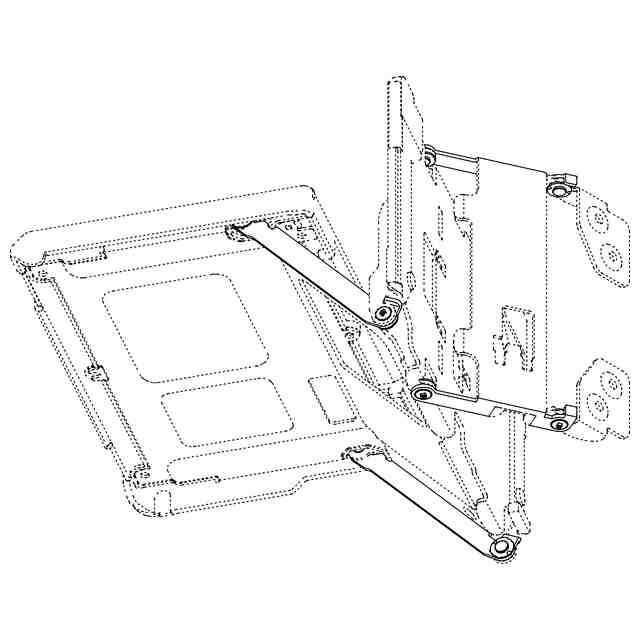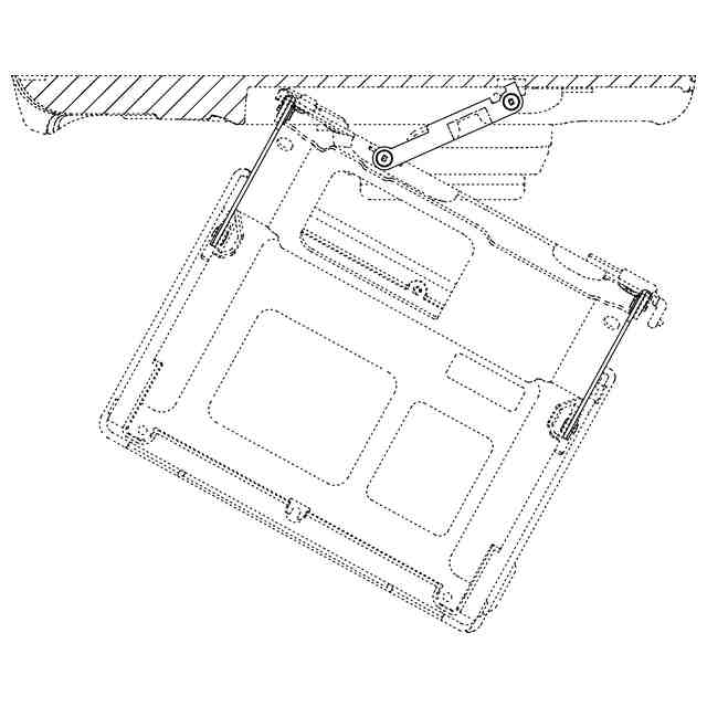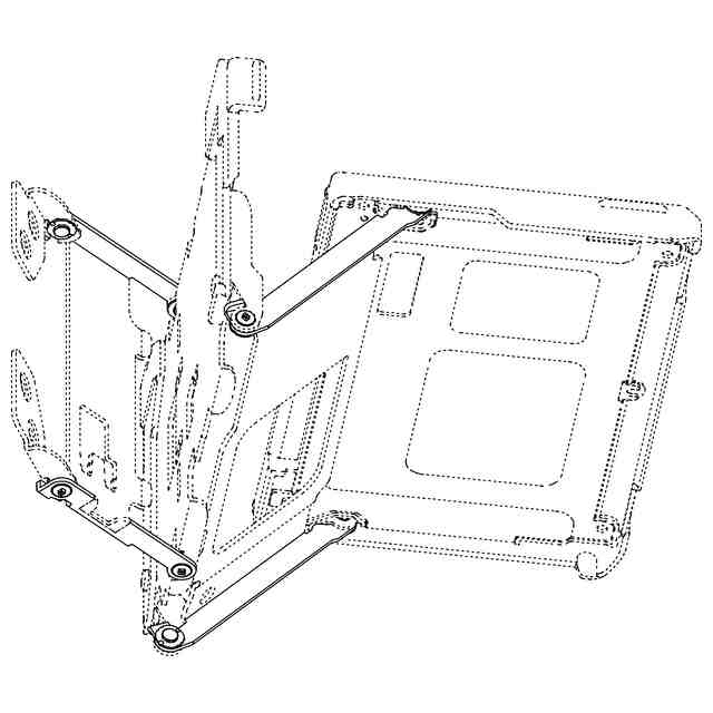 意匠登録を受けようとする部分を実線で、それ以外の部分を破線で表している。各図において表れる一点鎖線は、登録を受けようとする部分とそれ以外の部分の境界のみを表している。本願意匠において登録を受けようとする部分はチルトモニタ部のアーム部であって、機能的・形態的一体性を有する。