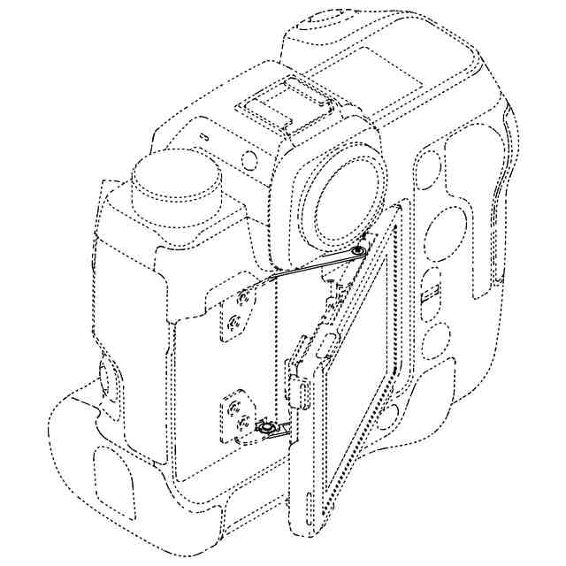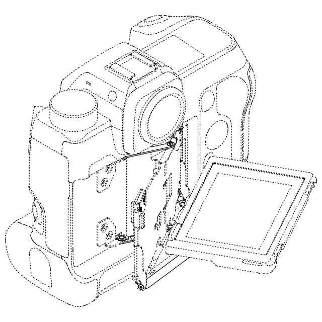 本願意匠にかかる物品は、チルトモニタ部を有するデジタルカメラであって、チルトモニタ部は、表示部と複数の支持プレートから成り、各プレートはアーム部によって回動可能に結合されている。変化した状態を示す背面・平面・右側面側からの斜視図1乃至3に示すように、アーム部を回動させて表示部の傾斜角度を調節することができる。