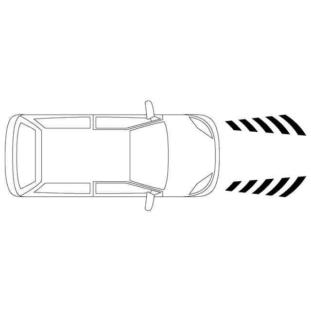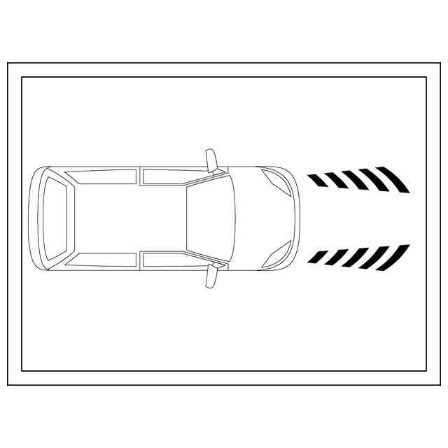本画像は、自動車が発進する旨の情報を周囲の人等に知らせる表示画像である。本画像は路面等に投影表示され、「変化した状態を示す画像図」へと変化する。