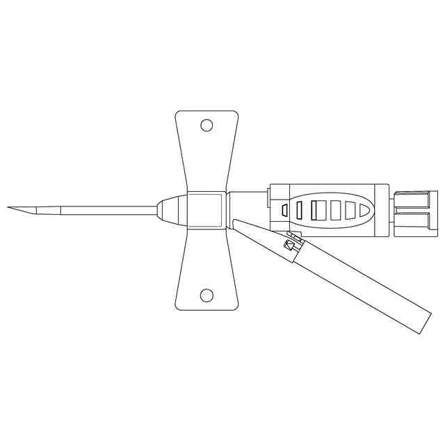 本意匠は、針本体の長手方向に対して翼が左右に延びており、針本体の長手方向に対して側管が斜めに延びており、左右に延びた翼に対して側管が上側に延び、先端の刃面が上を向いた状態から、左右に延びた翼に対して側管が横側に延び、先端の刃面が横を向いた変化途中の状態を経由して、左右に延びた翼に対して側管が横側に延び、先端の刃面が上を向いた変化した状態となる動的意匠である。側管が翼に対して上側に延び、先端の刃面が上を向いた状態は、斜視図、正面図、背面図、平面図、底面図、左側面図、右側面図に示される。側管が翼に対して横側に延び、先端の刃面が横を向いた変化途中の状態は、変化途中の状態の斜視図、変化途中の状態の正面図、変化途中の状態の背面図、変化途中の状態の平面図、変化途中の状態の底面図、変化途中の状態の左側面図、変化途中の状態の右側面図に示される。側管が翼に対して横側に延び、先端の刃面が上を向いた変化した状態は、変化した状態の斜視図、変化した状態の正面図、変化した状態の背面図、変化した状態の平面図、変化した状態の底面図、変化した状態の左側面図、変化した状態の右側面図に示される。