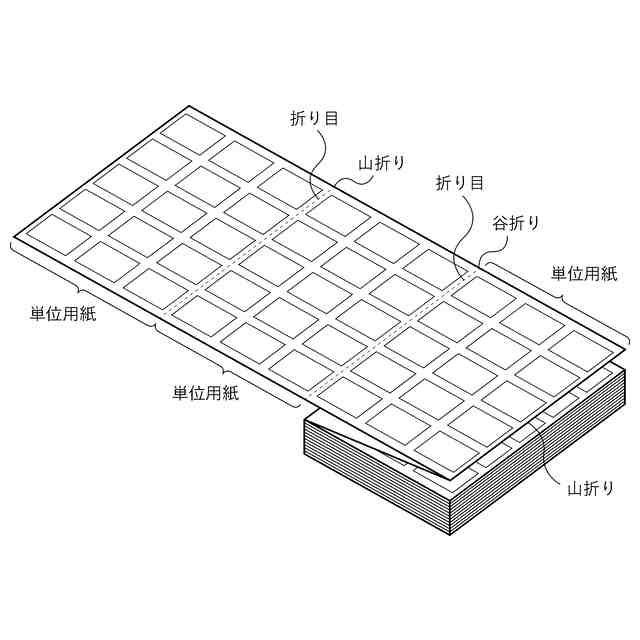 この物品は、ノート用紙に係り、アイデアを発想するために用いる。本ノート用紙は、横寸法が約210mm、縦寸法が約297mmの大凡A4サイズの縦長の単位用紙を横方向に連ねると共に、単位用紙毎に山折りと谷折りを交互に繰り返すことにより蛇腹折りし、折り畳んだ際の厚さは約40mmである。各単位用紙には、全面に亘り横寸法が約58mm、縦寸法が約45mmのマス目が描かれている。このマス目は、参考展開図および使用状態を示す参考図に示すように、各単位用紙において同じ図柄である。