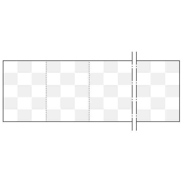 中間省略をした部分の長さは、約20mである。破線は折り目を表す。左側面図は右側面図と同一につき、左側面図を省略する。裏面図は平面図と同一につき、裏面図を省略する。