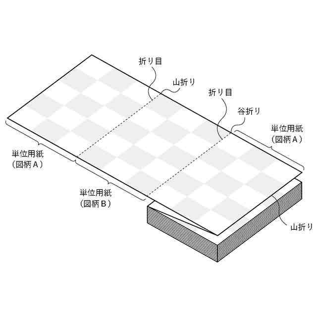 この物品は、ノート用紙に係り、アイデアを発想するために用いる。本ノート用紙は、横寸法が約210mm、縦寸法が約297mmの大凡A4サイズの縦長の単位用紙を横方向に連ねると共に、単位用紙毎に山折りと谷折りを交互に繰り返すことにより蛇腹折りし、折り畳んだ際の厚さは約40mmである。各単位用紙には、全面に亘り横寸法が約70mm、縦寸法が約59mmのマス目が描かれている。このマス目は、参考展開図および使用状態を示す参考図に示すように、各単位用紙において、図柄A、図柄Bが交互に描かれている。