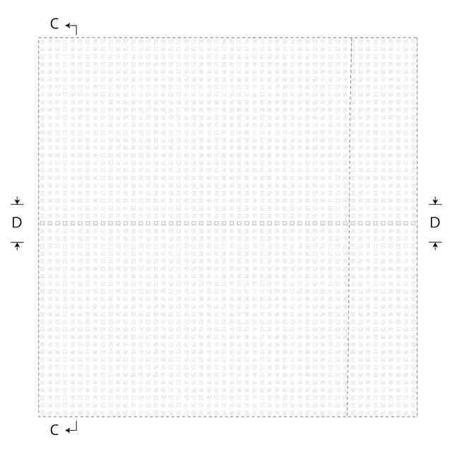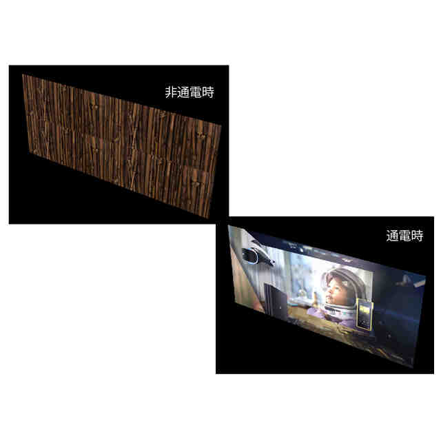 本願意匠に係る物品は微細なLED素子を光源とするディスプレイユニットであり、単体でも機能するものの、通常は複数を組み上げて用いる。多くを組み合わせれば大画面となり、少数のユニットで比較的小さな画面を構築することも可能である。本願物品は、その画面上に視認されるように、写真、絵画、その他種々のグラフィカルな加飾を施した層(以下「加飾層」という。)を具えており、光源となるLED素子周辺において僅かに開口する。そのため、実施態様の一例を示す参考図に表すように、本願物品の非通電時には当該加飾層上の装飾のみが視認され、通電時にはディスプレイに映し出される映像のみが視認される(C-D部分参考拡大図において、引出線1で示す部分が開口部、同2はディスプレイ面、同3はLED素子、同4が加飾層表面である。)。このように、本願物品は映像などを映すディスプレイ装置として、併せて建築物の内外壁等に埋め込んで用いる加飾用の材として機能する。具体的な使用場面は様々あるが、例えば住居のリビングの内壁に用いれば、テレビジョン放送等の視聴のためのディスプレイとして用いることができる一方で、視聴をしていないときにはそれがそのまま壁となるので、リビングにテレビジョン受像機を置く必要がなくなり、リビング空間の構成に自由度が増すことになる。