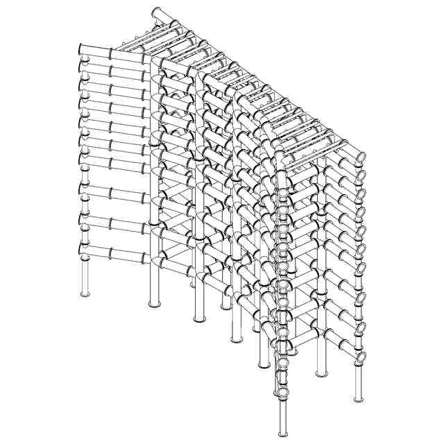 本物品は、アーチ構造と平坦構造とを組み合わせ、上部に鋼管を配して構造強化を図った砂防えん堤用枠体である。