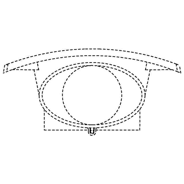 実線で表した部分が、部分意匠として意匠登録を受けようとする部分である。一点鎖線は、部分意匠として意匠登録を受けようとする部分とその他の部分の境界のみを示す線である。左側面図は右側面図と対称に表れるため省略する。