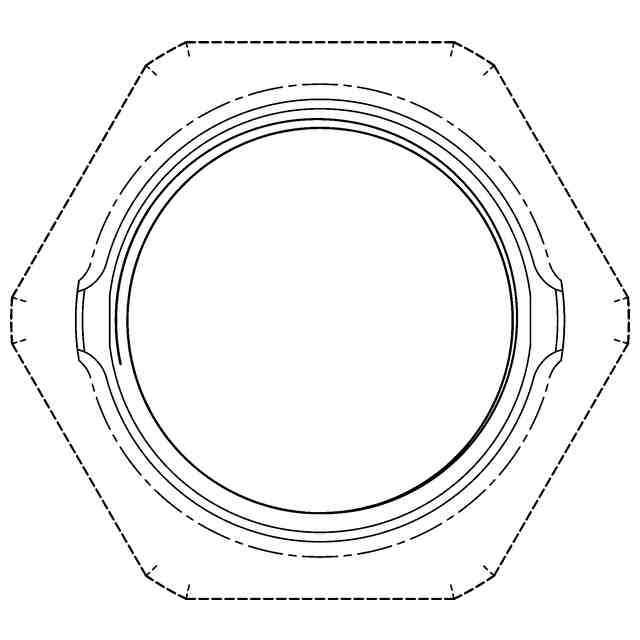 背面図は正面図と同一に表れるため省略する。左側面図は右側面図と同一に表れるため省略する。実線で表した部分が、部分意匠として意匠登録を受けようとする部分である。一点鎖線は部分意匠として意匠登録を受けようとする部分とその他の部分との境界のみを示す線である。