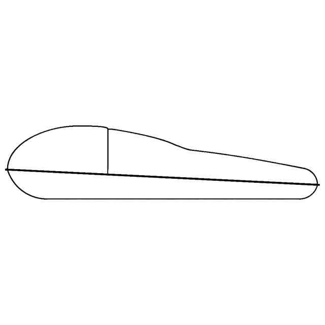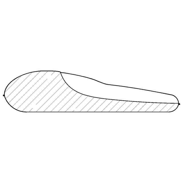 左側面図は右側面図と対称に表れるため省略する。斜視図において、細線は、立体表面の形状を特定するための線である。参考斜視図は、さらに表面の陰影も細線で表している。