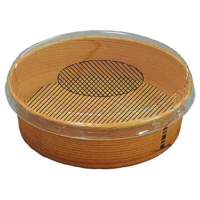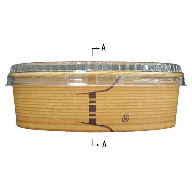 斜線を引いて表した器の底面全面と蓋の中央部分以外の部分が、意匠登録を受けようとする部分である。一点鎖線は、意匠登録を受けようとする部分とその他の部分との境界のみを示す線である。A-A切断部拡大端面図において、実線で表された部分が意匠登録を受けようとする部分である。材質は、蓋は透明プラスチック製であり、器は紙製である。