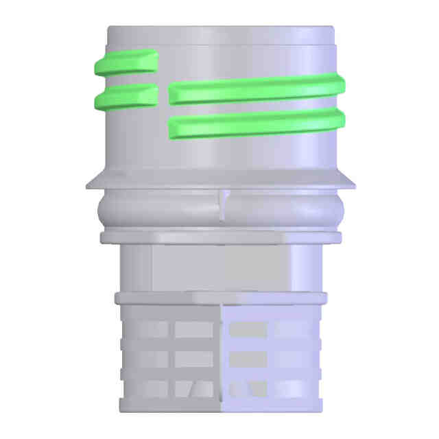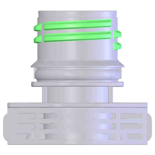 本物品は、主として液体などの内容物を充填して使用するパウチ容器の開口部分に熱溶着して取り付けられるスパウトである。既存のキャップへの嵌合を考慮し、前記スパウトの開口部内側には段差が設けられている。封印帯とスパウトの嵌合を助けるために、スパウトの封印帯との嵌合部分は丸みを持たせている。