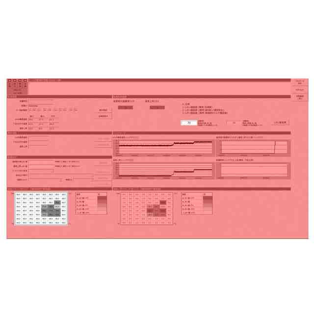 画像図に表された画像は、電気設備に係る温度分布測定を行うセンサの測定データを表示するために使用される情報表示用画像である。センサにて測定された温度の分布が数値及び色の濃淡でマッピング表示されることにより、過熱の有無を一目で確認・検知し易くすることを目的としている。閾値に設定された値を基準として、例えば、温度が閾値を逸脱した場合と、閾値以内ではあるが温度が高い場合は異なる色で着色され、閾値との温度差によって各色が濃淡で表される。閾値は、測定開始時にセンサに設定された仮決定値が反映されるが、一定期間経過後に測定データからより適切な閾値を決定し任意の値に変更することで、過熱リスクの診断精度を向上することができる。使用状態を示す参考図1乃至使用状態を示す参考図3に示すように、測定状況によって表示される分布は変化する。