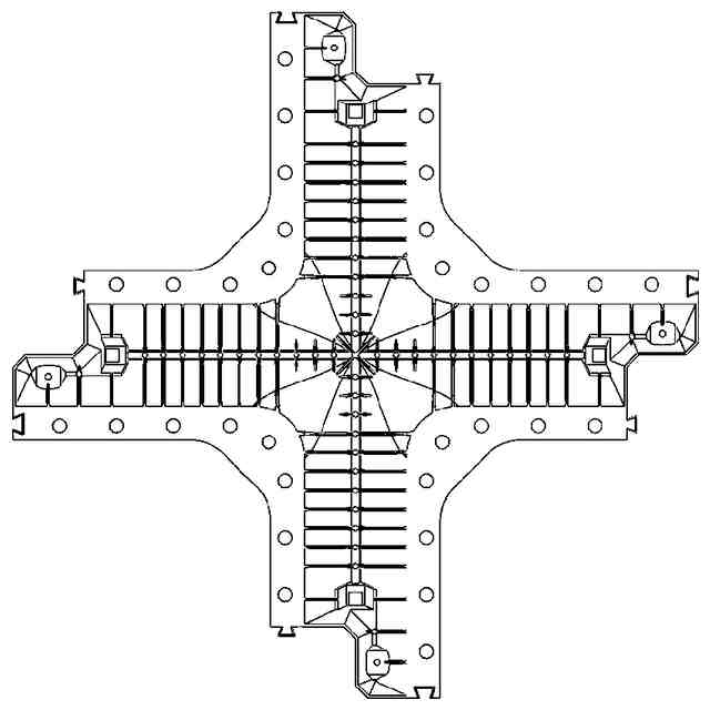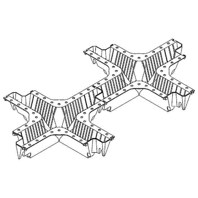本物品は、貯水及び排水が可能な路面を成型するための路面成型補助部材である。路面成型補助部材は、平面図及び底面図に示すように、水平方向に延びる2つの貯水部材が略直角に交差した形状を有しており、内部には貯水空間が形成されている。貯水部材の上部側には、貯水空間と連通される複数の貫通孔が形成されており、貯水管の下部側は、開放されている。参考図1及び2に示すように、貯水部材の端部同士を係合させることで、4つの貯水部材によって囲まれた打ち込み空間が形成される。路面の成型に当たっては、地面に敷かれた砕石等の上に本物品を配置した上で、打ち込み空間にコンクリート等の路面成型材料を打ち込む。打ち込まれた路面成型材料が硬化することで、貫通孔から貯水空間を介して地面へ繋がる排水路が形成された路面が成型される。また、貯水部材の端部には、凹部が形成されており、参考図3に示すように、貯水部材の端部同士を係合させた状態で、凹部上に鉄筋等の棒状部材を載置可能である。路面成型材料は、棒状部材が載置された状態で打ち込むことも可能である。更に、参考図4-6に示すように、係合された貯水部材の端部上にカバー部材を取り付けることで、端部の高さを貯水部材の高さに合わせることが可能である。