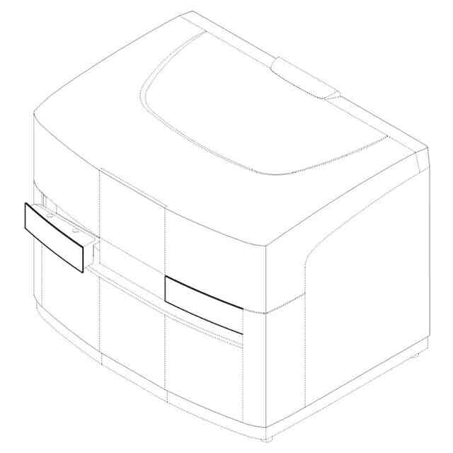 実線で表した部分が、部分意匠として意匠登録を受けようとする部分である。 本意匠は動的意匠であり、試料収容部が収納された状態と、試料収容部が引き出された状態との間で可逆的に変化する。六面図は、試料収容部が収納された状態を表している。試料収容部が引き出された状態を、変化した状態を表す斜視図にて表している。