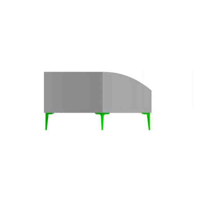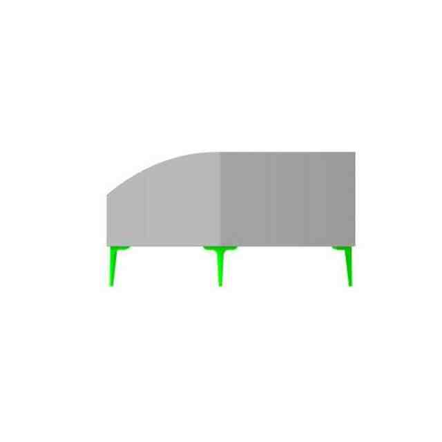 黄緑色で着色された部分以外の部分が、意匠登録を受けようとする部分である。画像の表面部に表された濃淡は、いずれも立体表面の形状を特定するためのものである。断面図は、正面図の左右方向の中心で切断して見た右側面の断面図である。